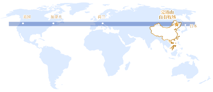 完達(dá)山乳業(yè)自有奶源基地位于北緯42°-47°,與荷蘭、丹麥、美國北部各州及日本的北海道等國家和地區(qū), 同處在“世界黃金奶源帶”上。是舉世公認(rèn)的優(yōu)質(zhì)奶牛養(yǎng)殖基地,素有“龍江沃土,黃金奶倉”美譽(yù)。